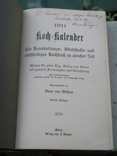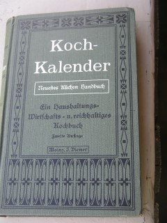 | 618 | 2. | kalender | koch kalender | anna von wehlau | j. diemer, mainz | 1910 | | 15 x 22,5 | 601 | 4114 | 4 | weißer präedruck auf grünem leinen | | | |