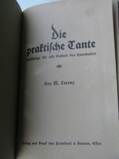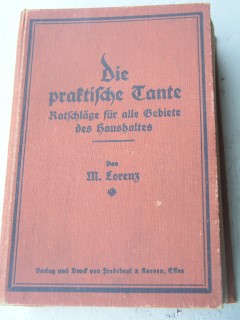 | 626 | | haushalt | die praktische tante | m. lorenz | fredebeul & koenen, essen | 1917 | | 12 x 18,3 | 992 | 2389 | 4 | schwarzer druck auf braunem halbleinen | | | |
