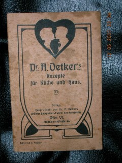 | 638 | 3. | oetker | dr. a. oetker's rezepte für küche und haus | | haupt depot von dr. a. oetker's größter backpulver frabrik des kontinents, wien VI | 1920 | * | 9,5 x 14,5 | 32 | | 5 | schwarzer druck auf papier - geheftet | | | |
