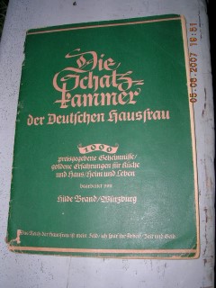 | 674 | 4. | haushalt | die schatzkammer der deutschen hausfrau | hilde brand | fränkische gesellschaftsdruckerei gmbh, würzburg | 1930 | * | 15,5 x 21,5 | 64 | | 5 | geheftet | | | |