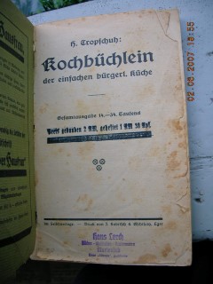 | 678 | 7. - 10. | deutsches | kochbüchlein der einfachen bürgerl. Küche | h. tropschuh | selbstverlag | 1929 | | 12,5 x 19,5 | 186 | | 7 | paperback | | | |