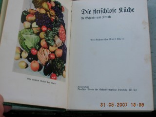 | 714 | | vegetarisch | die fleischlose küche für gesunde und kranke | kurt klein | deutscher verein für gesundheitspflege, hamburg | 1935 | * | 14 x 20,5 | 266 | | 3 | goldener prägedruck auf grünem kunstleder | | | |