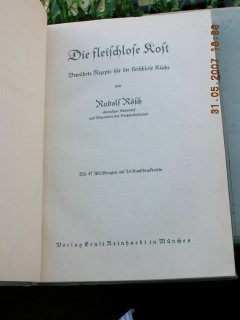 | 715 | | vegetarisch | die fleischlose kost | rudolf rösch | ernst reinhardt in münchen | 1939 | | 16 x 23,2 | 157 | | 5 | grüner druck auf grünem halbleinen | | | |