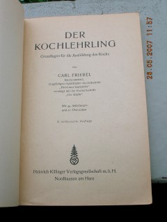 | 718 | 3. | deutsches | der kochlehrling | carl friebel | heinrich killinger verlagsgesellschaft m.b.h., nordhausen am harz | 1944 | | 14 x 20,5 | 164 | | 4 | paperback, schwarzer druck | | | |