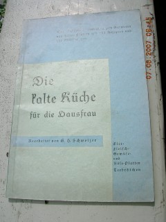 | 65 | 3. | kalte küche | die kalte küche für die hausfrau | g.h. schweizer | selbstverlag g.h.schweizer mittweida | 1933 | | 15,7 x 22,9 | 44 | | 3 | schwarzer druck auf hellblauem karton | | | |