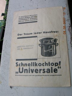| 71 | | schnellkochtopf | der traum jeder hausfrau | universale | universalvertrieb | 1938 | | 16,5 x 24,5 | 16 | | 4 | schwarzer druck auf gauem papier | | | |