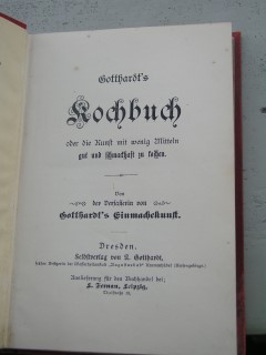 | 61 | | deutsches | gotthardt's kochbuch | gotthardt | selbstverag v.n. gotthardt | 1890 | * | 13 x 18,5 | 305 | 1281 | 4 | golddruc auf rotem karton - wasserflecken | | | |