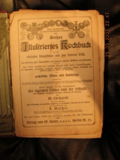 | 64 | | deutsches | großes illustriertes kochbuch f.d.einfachen bürger | m. ehrhardt | verlag v. w. herlet u. a. mathis | 1914 | | 16,5 x 23,7 | 1000 | 875 | 6 | golddruck auf rotem halbleinen | | | |