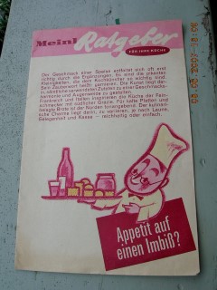 | 776 | | meinl | meinl ratgeber - appetit auf einen imbiß? | otto weber | julius meinl a.g. | 1945 | * | 14,8 x 22,7 | 6 | | 4 | roter druck - gefaltet | | | |