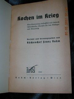 | 772 | | krieg | kochen im krieg | franz ruhm | ruhm verlag, wien | 1940 | | 15,5 x 22,8 | 112 | | 5 | bunter druck - paperback | | | |