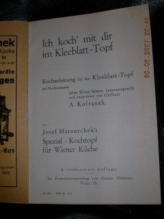 | 777 | 4. | kleeblatt | ich koch' mit dir im kleeblatt topf | a. kofranek | gustav ehmann, wien 4 | 1936 | | 13 x 18,5 | 127 | | 4 | paperback | | | |