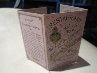 | 7806 | | österreichisch | recept zur sacher torte und kalender | k. k. hofrestaurant | eduard sacher, wien | 1884 | | 4,5 x 7,5 | 5 | | 3 | gefaltet | | | |