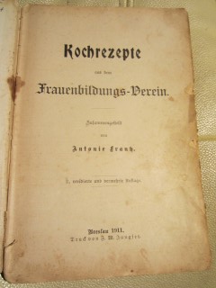 | 7814 | | deutsches | kochrezepte aus dem frauenbildungs verein | antonie frank | f.w. jungfer, breslau | 1911 | | 13,4 x 19,9 | 125 | ??? | 5 | schwarzer druck auf karton | | | |