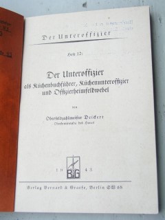 | 788 | heft 12 | deutsches | der unteroffizier als küchenbuchführer, küchenunte | deickert | verlag bernard & graefe | 1943 | | 12,5 x 17,2 | 213 | | 3 | schwarzer druck paperback | | | |