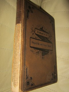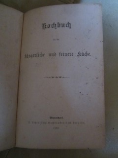 | 7909 | 1. und einzige | deutsches | kochbuch für die bürgerliche und feinere küche | | j. schnell'sche (leopold) | 1893 | | 13,3 x 20,5 | 224 | 1999 | 5 | schwarzer prägedruck auf braunem leinen halber rücken fehlt | | | |