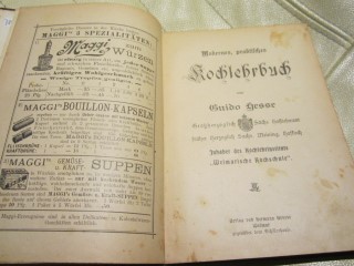 | 7895 | 1. u. einzige | deutsches/weimar | modernes, praktisches kochbuch | guido hesse | hermann grosse, weimar | 1890 | | 13,3 x 18,6 | 323 | 1588 | 5 | silberprägedruck auf rotem leinen | | | |