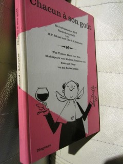 | 8058 | | gastrosophisches | chacun a son gout - ein kulinarisches ABC -was thomas mann vom bier, shakespeare vom madeira, casanova vom käse und cäsar von der auster hielten | h.p. schaad/ otto c.h. schrader | diogenes verlag ag, zürich | 1957 | | 12 x 17 | 93 | | 3 | hard, glanz, schwarzer druck | | | |