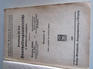 | 8059 | | haushalt | handbuch für den haushaltungsunterricht in mädchen=berufsschulen | marianne püschel | julius klinkhardt, leipzig | 1928 | | 14,5 x 21,8 | 160 | | 4 | schwarzer druck, grauer leinenrücken | | | |