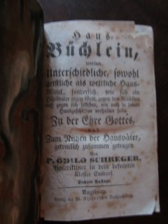 | 8093 | 6. | haushalt | haus=büchlein, worinn unterschiedliche, sowohl geistliche als weltliche hausmittel, sonderlich, wie sich ein hausvater gegen gott, gegen den nächsten und gegen sich selbsten, wie auch in seinen hausgeschäften verhalten solle. | p. odilo schreger, benediktiner in dem befreyten kloster ensdorf | verlag der m. rieger'schen buchhandlung, augsburg | 1740 | | 9,3 x 14,3 | 268 | 3482 | 5 | neu gebunden, unbedruckt, heller einband | | | |