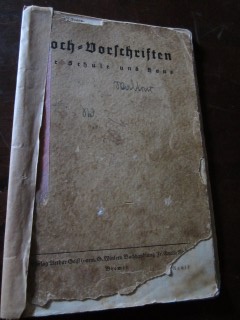 | 8118 | | deutschland / bremen | kochvorschriften für schule und haus | | arthur geist verlag, bremen | 1935 | | 14,5 x 22,5 | 56 | | 6 | taschenbuch, eingerissen - schwarzer druck | | | |