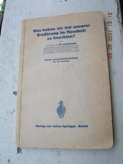| 811 | 4. | ernährung | was haben wir bei unserer ernährung im haushalt zu | prof. dr. a. juckenack | julius springer verlag, berlin | 1924 | | 13,6 x 20,7 | 94 | | 5 | schwarzer druck - paperback | | | |