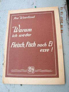 | 816 | 11.-15.tausend | diät | warum ich weder fleisch, fisch noch ei esse! | are waerland | waerland verlag hamburg | 1952 | | 15 x 21 | 24 | | 5 | geheftet, brauner druck | | | |