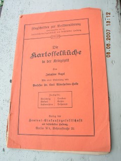 | 821 | heft 12 | krieg | die kartoffelküche in der kriegszeit | josephine nagel | zentral einkaufsgesellschaft | 1915 | * | 14 x 22 | 16 | | 5 | schwarzer druck - oranges cover | | | |