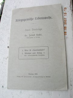| 825 | | krieg | kriegsgemäße lebensweise | dr. jakob hacks | priebatsch's buchhandlung in breslau | 1915 | | 14,5 x 22,5 | 41 | | 3 | schwarzer druck | | | |