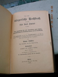 | 812 | 17. | deutsches | das beste bürgerliche kochbuch vorzüglich für das haus | emma allestein | hermann kanitz' verlag | 1896 | | 13,3 x 20 | 575 | 72 | 4 | goldprägedruck | | | |