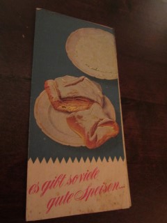 | 8144 | | dessert | es gibt so viele gute speisen…. | | topfen ?? | 1940 | * | 9,8 x 20,8 | 5 | | 4 | gefaltet (2 falz) | | | |