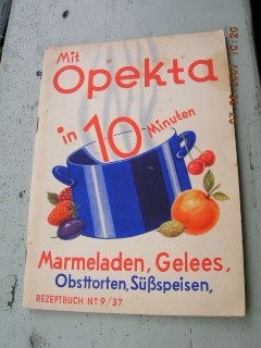 | 828 | | opekta | mit opekta in 10 minuten marmeladen, gelee | | opekta g.m.b.h. köln - riehl | 1934 | | 14,5 x 20,4 | 48 | | 5 | bunter druck - geheftet | | | |