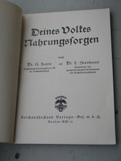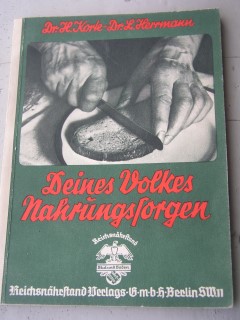 | 830 | | krieg | deines volkes nahrungssorgen | dr. s. korte, dr. l. herrmann | reichsnährstand verlags ges.m.b.h., berlin | 1937 | | 13 x 18 | 126 | | 4 | rot grüner druck - paperback | | | |