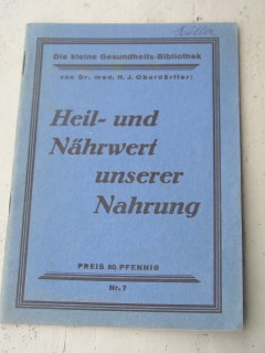 | 839 | | gesundheit | heil- und nährwert unserer nahrung | dr. med. h. j. oberdörffer | zytin verlag, münchen 2 | 1929 | | 10,6 x 14,7 | 32 | | 4 | geheftet - schwarzer druck auf blau | | | |