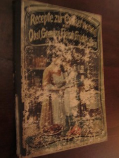 | 8385 | | einmachen | recepte zur conservierung von obst, gemüse, fleisch, fruchtsäften | gesina braunbart - frau gartenbauinspektor, großenhain | | 1910 | * | 15,5 x 23 | 40 | | 5 | schwarzer leinenrücken, papp stark berieben | | | |