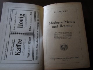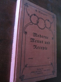 | 8402 | 1. | hamburger | moderne menus und recepte | e. (emil) naegele | verlag küche und keller (heinrich eisler) hamburg | 1910 | | 15,5 x 23 | 231 | 2684 | 4 | schwarzer druck auf rotem leinenrücken | | | |