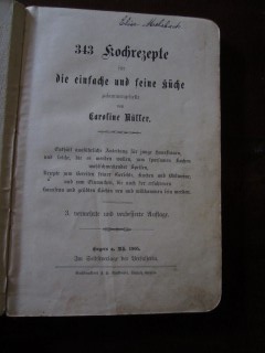 | 8393 | 9. | deutsche | illustriertes kochbuch für alle stände oder zuverlässige anweisung, alle arten der in deutschland gebräuchlichen speisen billig und schmackhaft herzustellen. | friederike ritter (berliner kochinstitut) | ernst schotte & co., berlin | 1864 | | 12,5 x 18 | 590 | 3208 | 5 | nubeschriftet, neu geb. brauner lededrrücken | | | |