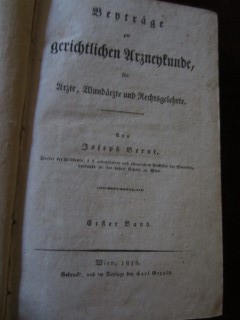 | 8399 | | arzney-heilkunst | beyträge zur gerichtlichen arzneykunde für ärzte, wundarzte und rechtsgelehrte | joseph bernt, dr. d. heilkunde | carl gerold, wien | 1818 | | 14 x 21 | 233 | 328 | 4 | golddruck auf rückenschild | | | |