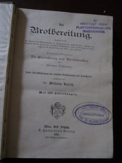 | 8400 | 1. | brot | die brotbereitung. Umfassend: die theorie des bäckergewerbes, die beschreibung der rohmaterialien | d. wilhelm bersch | a. hartleben's verlag, wien | 1895 | | 13,5 x 18,5 | 383 | 335 | 4 | rückenschild auf braunem leinenrücken | | | |