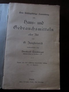 | 8401 | 9. | haushalt | eine fünfzigjährige sammlung von haus- und gebrauchsmitteln aller art | g. jungheinrich | hans hedewig's, kurt ronniger, leipzig | 1922 | | 14,4 x 22,5 | 272 | 1808 | 5 | taschenbuch, schwarzer druck | | | |