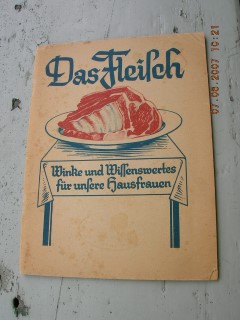 | 844 | | fleisch | das fleisch - winke und wissenswertes für unsere h | dr. r. hanne | eduard günher, hamburg | 1927 | | 12,3 x 16,2 | 31 | | 4 | rot blauer druck - geheftet | | | |