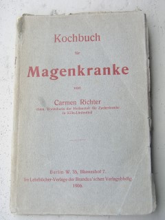 | 855 | 2. | diät | kochbuch für magenkranke | carmen richter | im lehrbücherverlage der brandus'schen verlagsbuchhandlung | 1906 | | 11,7 x 18 | 200 | 3174 | 5 | roter druck auf grü - paperback | | | |