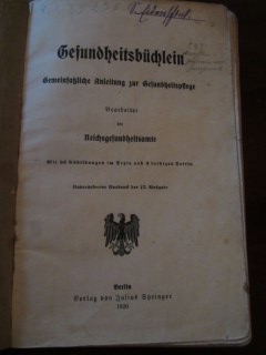 | 8486 | 17. | gesundheit | gesundheitsbüchlein | reichsgesundheitsamt | julius springer, berlin | 1920 | | 13 x 19,2 | 280 | | 5 | taschenbuch schwarzer druck, soft | | | |