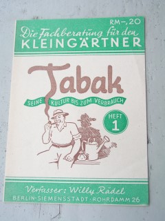 | 862 | | tabak | tabak seine kultur bis zum verbrauch - heft 1 | willy rädel | berhard göbel, berlin | 1920 | * | 10,2 x 14 | 7 | | 3 | braun grüner druck - gefaltet | | | |