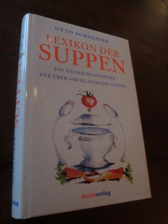 | 8617 | | suppen | lexikon der suppen - ein nachschlagwerk für über 1000 klassische suppen | otto schneider | marixverlag, wiesbaden | 2005 | | 14,6 x 21,4 | 294 | | 2 | golddruck auf grau + schutzumschlag | | | |