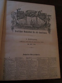 | 8612 | 10.. Jahrgang | haushalt | fürs haus - wochenschrift - praktisches wochenblatt für alle hausfrauen | clara von studnitz | zeitungsverlag von sudnitz, dresden | 1891 | | 25,8 x 34,5 | 416 | | 4 | zeitschriften gebunden nr. 470 - 521 | | | |