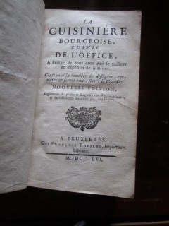 | 8615 | 1.band | französisch | la cuisiniere bourgeoise suivie de l'office | (menon) | chez francois foppens, bruxelles | 1756 | | 10 x 16,8 | 484 | 2523 | 5 | orig.ledereinband mit golddruck am rücken | | | |
