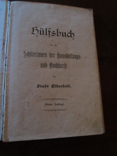 | 8623 | 4. | lehrbuch | hülfsbuch für die schülerinnen der haushaltungs- und kochkurse der stadt elberfeld | | sam lucas, elberfeld | 1912 | | 13,9 x 20,3 | 68 | ??? | 5 | weißer druck auf grün - schwarzer leinenrücken | | | |