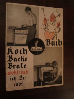 | 8632 | | solwa | kochbuch - backe brate elektrisch ich dir rate! | | fa. Solwa - elektroherd | 1940 | * | 14,9 x 21 | 30 | | 5 | geheftet, schwarz roter druck, glanz | | | |