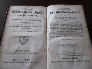 | 8674 | 12.band | lebensmittel | neuer schauplatz der künste - das fleischerhandwerk | friedrich a. reimann | b. fr. voigt, weimar | 1842 | | 11 x 17,7 | 306 | 3477 | 5 | unbedruckter marmor. Papp | | | |