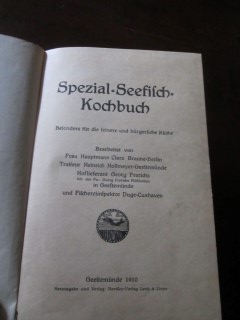 | 8676 | | fisch | spezial seefisch kochbuch | clara braune, heinrich hollmeyer, georg frerich | nordsee verlag, lenk & linne, geestemünde | 1910 | | 15,8 x 23 | 99 | 490 | 5 | bild auf rotem leinen | | | |
